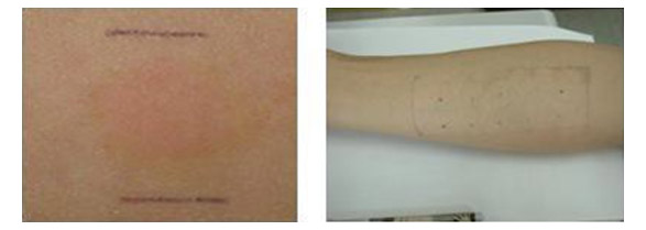 Treatment of 10 ml tested product by dermal stamping, twice a week